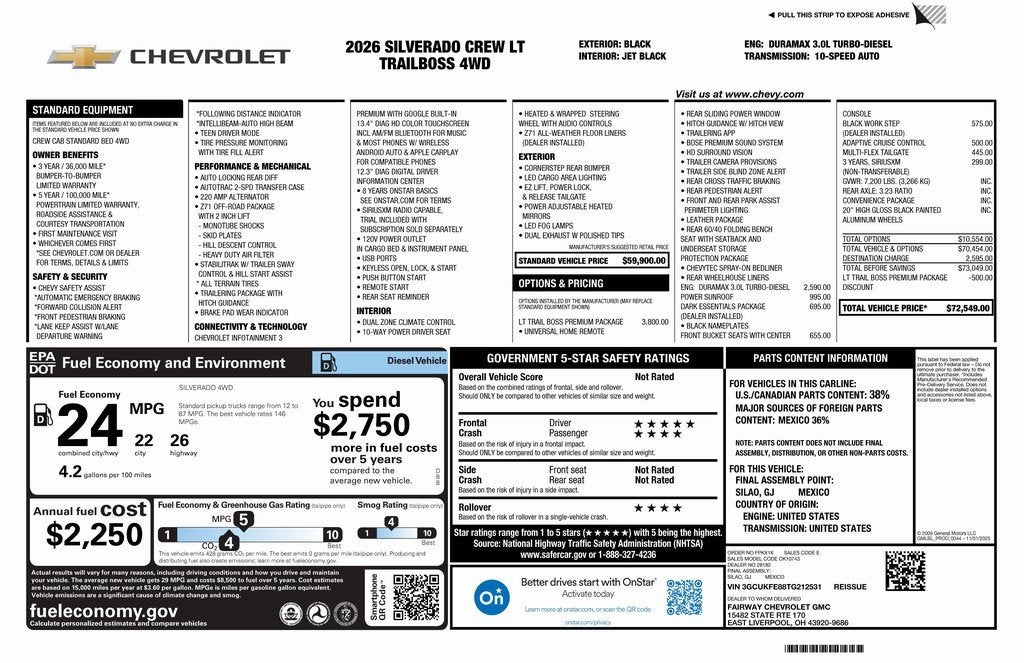 2026 Chevrolet Silverado 1500 LT Trail Boss 4D Crew Cab Black 3.0L I6 10-Speed Automatic