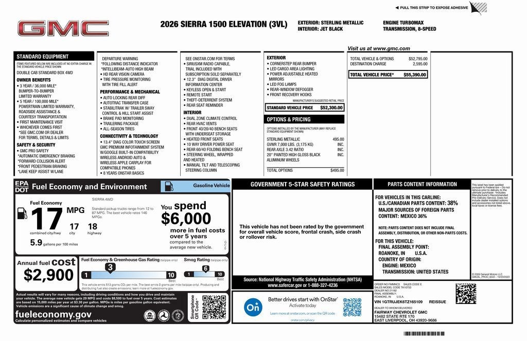 There truly is a difference when buying a New Vehicle at Fairway Chevrolet GMC. You work with one dedicated salesperson from start to finish. No hidden decision-makers, no back-and-forth negotiations – just honest and straightforward service. We're here to make your car-buying experience smooth and enjoyable. Price includes: $1750 - Bonus Cash. Exp. 02/02/2026 $1750 - Purchase Allowance. Exp. 02/02/2026