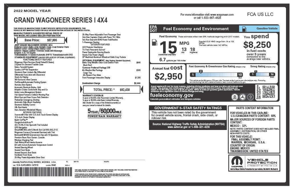 CarBravo 2022 Jeep Grand Wagoneer Series I 4x4