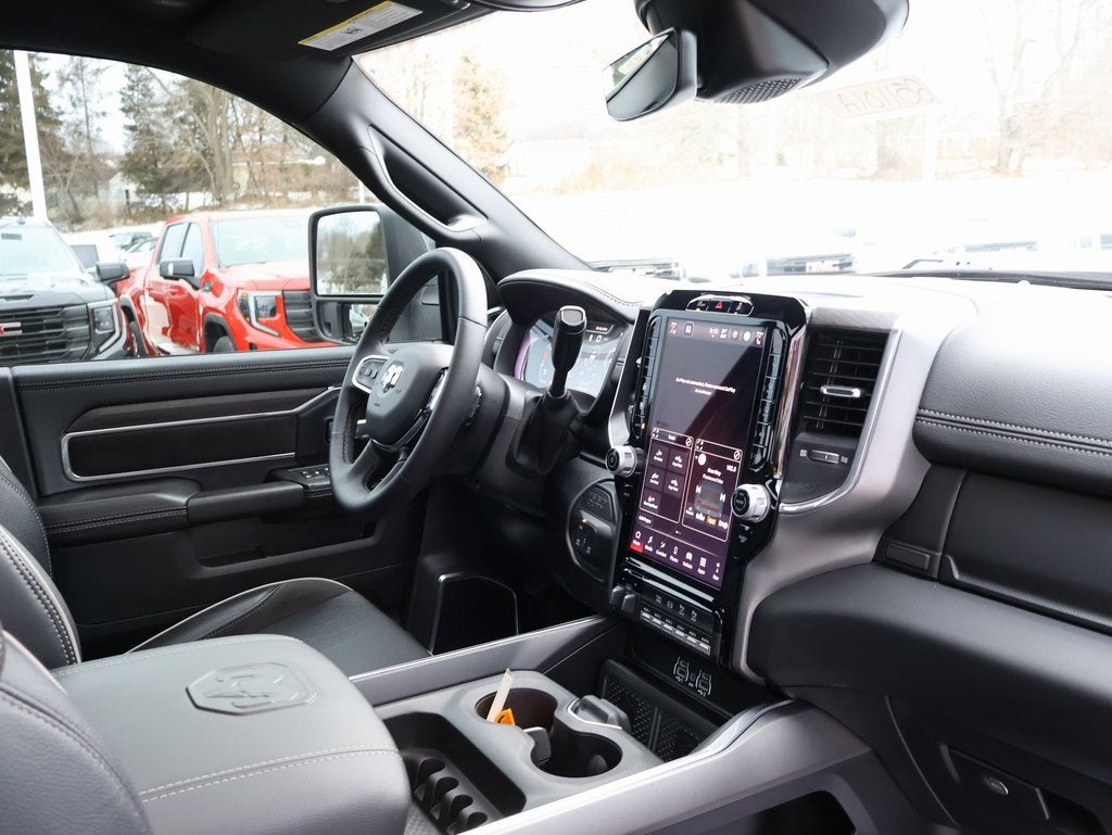 Recent Arrival! CARFAX One-Owner. 2025 RAM 2500 LARAMIEPERFORMANCE & HANDLING• 3.42 AXLE RATIO• ANTI SPIN DIFFERENTIAL REAR AXLE• ADAPTIVE STEERING SYSTEM• 5TH WHEEL AND GOOSENECK TOWING PREP GROUP• TOWING TECHNOLOGY GROUP• TRAILER REVERSE GUIDANCE• TRAILER TIRE PRESSURE MONITORING SYSTEM• OFF ROAD INFORMATION PAGESCOMFORT & CONVENIENCE• HEATED AND VENTILATED FRONT SEATS• HEATED STEERING WHEEL• POWER ADJUSTABLE PEDALS WITH MEMORY• DUAL ZONE AUTOMATIC CLIMATE CONTROL• POWER SUNROOF• REMOTE TAILGATE RELEASE• FULL LENGTH UPGRADED FLOOR CONSOLE• MOPAR FRONT AND REAR RUBBER FLOOR MATSTECHNOLOGY & ENTERTAINMENT• UCONNECT 5 NAVIGATION WITH 12 INCH TOUCHSCREEN• APPLE CARPLAY AND ANDROID AUTO• ALEXA BUILT IN• SIRIUSXM WITH 360L• HD RADIO• 4G LTE WI FI HOT SPOT• SURROUND VIEW CAMERA SYSTEM• DUAL WIRELESS CHARGING PADINTERIOR• LEATHER TRIMMED BUCKET SEATS• POWER 8 WAY DRIVER AND PASSENGER SEATS WITH LUMBAR• MEMORY SEAT MIRRORS AND PEDALS• HEATED AND VENTILATED SEATING• HIGH BACK FRONT SEATS• REAR 60 40 FOLDING SEATEXTERIOR• NIGHT EDITION• SPORT PERFORMANCE HOOD• LED BED LIGHTING• MOPAR SPRAY IN BEDLINER• MOPAR DEPLOYABLE BED STEP• GLOSS BLACK GRILLE ACCENTS• ALLOY WHEELS• POWER TELESCOPING HEATED TOW MIRRORSSAFETY & SECURITY• ACTIVE LANE MANAGEMENT SYSTEM• DROWSY DRIVER DETECTION• TRAFFIC SIGN RECOGNITION• PARKVIEW REAR BACK UP CAMERA• ELECTRONIC STABILITY CONTROL• TRACTION CONTROL• MULTIPLE AIRBAG SYSTEM• SECURITY SYSTEM